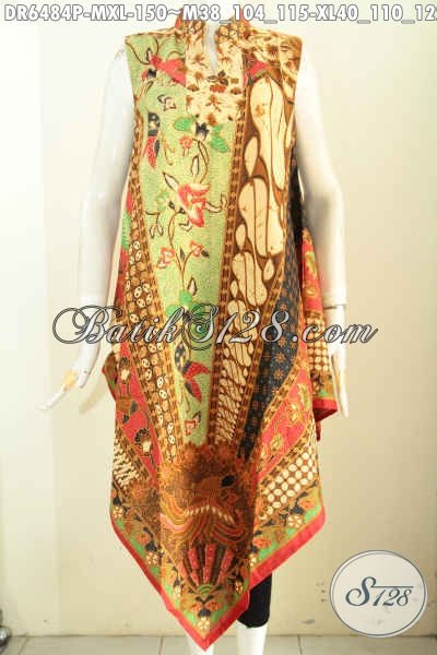 Baju Dress Batik Motif Moderl Klasik, Pakaian Batik Tanpa Lengan Dengan Resleting Belakang Trend Masa Kini Harga 100 Ribuan [DR6484P-M , XL]