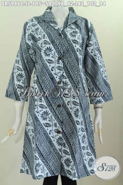 Baju Dress Batik Parang Bunga, Pakaian Batik Solo Halus Kerah Langsung Kwalitas Premium Proses Cap Untuk Penampilan Lebih Mewah [DR5946C-S , L]