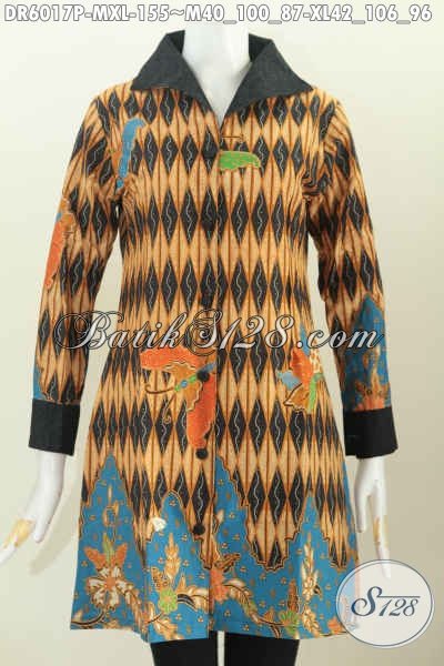 Baju Dress Batik Solo Halus Desain Mewah, Berbahan Kombinasi Emboss Motif Bagus Proses Printing Hanya 100 Ribuan [DR6017P-M , XL]