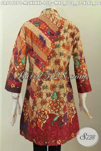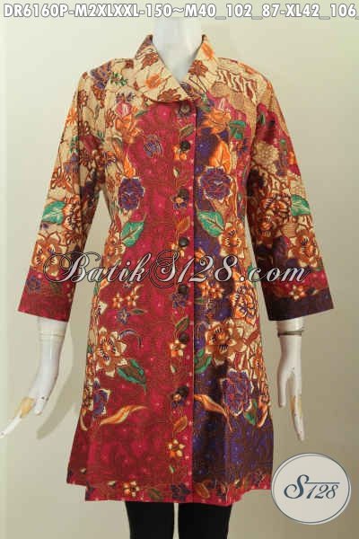 Baju Dress Batik Solo Istimewa, Pakaian BatikKerah Miring Untuk Tampil Gaya Dan Elegan Dengan Harga 150K [DR6160P-M , XL , XXL]