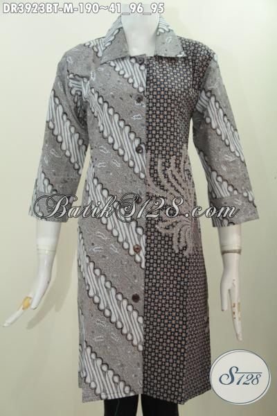 Baju Dress Batik Solo Model Kerah Lancip Motif Klasik Proses Kombinasi Tulis, Seragam Kerja Batik Wanita Muda Dan Dewasa Tampil Gaya Dan Elegan [DR3923BT-M]