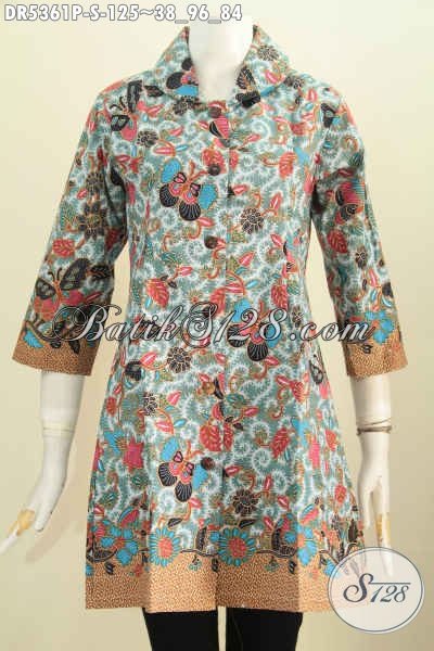Baju Dress Batik Terkini, Hadir Dengan Model Kerah Bulat Berpadu Motif Bunga Dan Kupu Buat Wanita Muda Tampil Modis Dan Cantik Mempesona [DR5361P-S]