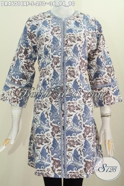 Baju Dress Batik Trendy Proses Cap Dengan Pewarna Alami, Busana Batik Solo Model Kancing Depan Berbahan Halus Motif Bagus Kwalitas Premium Full Furing [DR4601CAF-S]