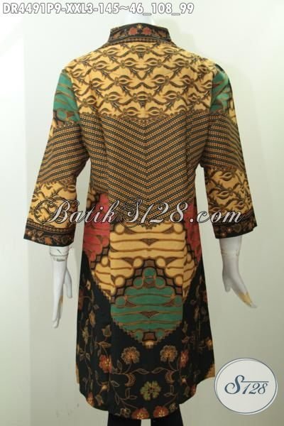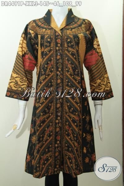 Baju Dress Batik Wanita Gemuk, Busana Batik Elegan Motif Klasik Ukuran Jumbo Proses Printing, Baju Batik Model Langsung Bisa Untuk Kondangan Dan Acara Formal [DR4491P-XXL]