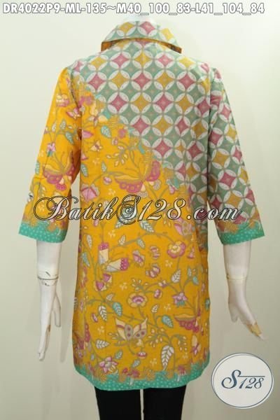 Baju Dress Batik Warna Cerah Kwalita Bagus, Busana Batik Modern Proses Printing Dengan Dua Motif Buat Tampil Lebih Trendy Dan Stylish [DR4022P-L]