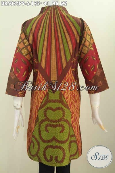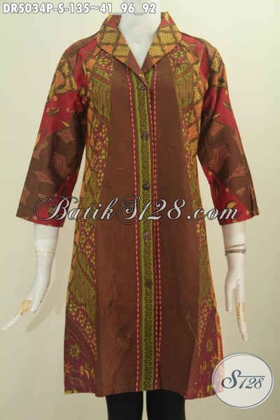 Baju Dress Elegan Motif Klasik Desain Mewah Proses Printing Model Kerah Langsung, Istimewa Untuk Baju Kerja Kantoran Wanita Karir [DR5034P-S]