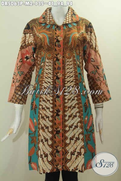 Baju Dress Istimewa Motif Klasik, Produk Pakaian Batik Masa Kini Buatan Solo Desain Elegan Kerah Langsung, Cocok Banget Untuk Acara Formal [DR5063P-M]