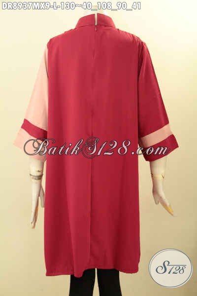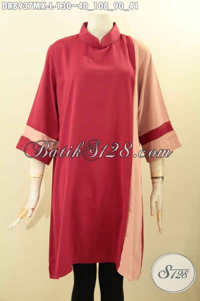 Baju Dress Kain Polos Maxmara, Busana Trendy Dengan Kombinasi Warna Keren Desain Kerah Shanghai Dengan Lengan 7/8 Dan Resleting Belakang Nan Modis [DR8937MX-L]