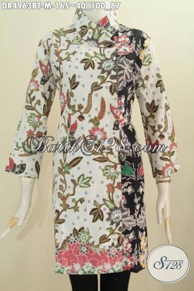 Baju Dress Kerah Miring Berbahan Halus Nan Istimewa, Pakaian Batik Solo Masa Kini Motif Mewah Proses Kombinasi Tulis Istimewa Buat Ke Kantor [DR4963BT-M]