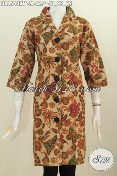 Baju Dress Keren Motif Bunga Dan Kupu, Pakaian Batik Elegan Warna Berkelas Proses Kombinasi Tulis Desain Kerah Langsung Full Furing Modis Untuk Kerja [DR4540BTF-M]