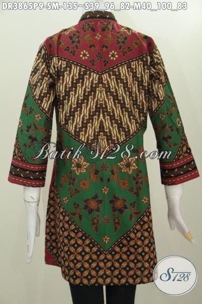 Baju Dress Klasik Kerah Shanghai Motif Milo, Pakaian Kerja Batik Elegan Desain Formal Bahan Halus Proses Printing Harga Terjangkau [DR3865P-S , M]