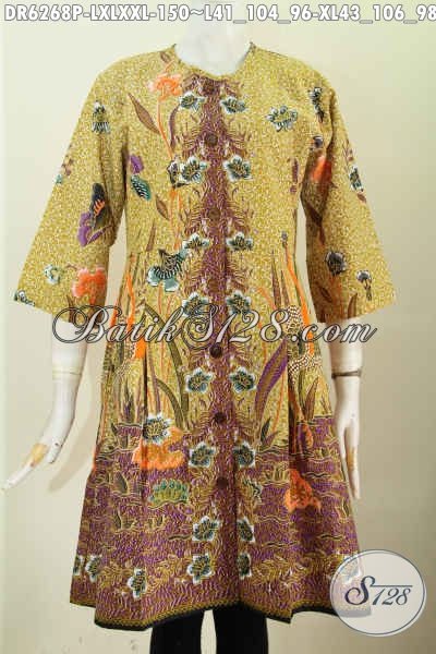 Baju Dress Kwalitas Bagus Bahan Adem Proses Printing Motif Keren Buatan Solo Desain Tanpa Krah Untuk Penampilan Makin Modis [DR6268P-L , XL , XXL]