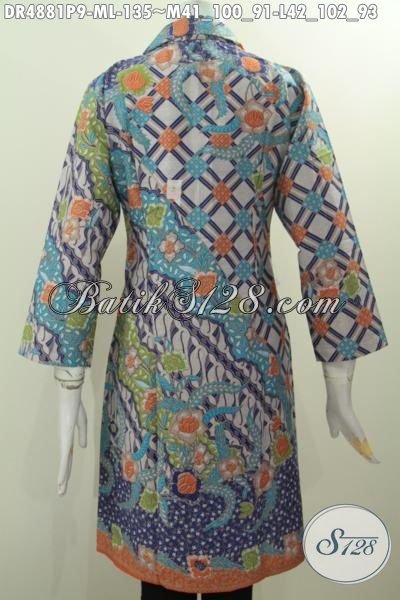 Baju Dress Modis Desain Mewah Berbahan Halus Proses Printing Dengan Kombinasi Warna Pagi Sore Dan Model Kerah Safari Yang Mampu Membuat Cewek Terlihat Istimewa [DR4881P-M , L]
