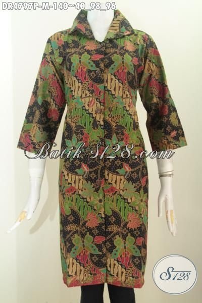 Baju Dress Trendy Dan Elegan Bautan Solo, Produk Busana Batik Halus Proses Printing Model Kerah Kotak Lancip Daleman Tidak Pakai Furing, Modis Buat Acara Formal [DR4797P-M]