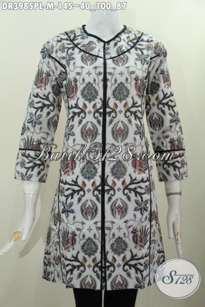 Baju Dress Trendy Tanpa Kerah, Busana Batik Modern Wanita Muda, Pakaian Batik Motif Unik Proses Printing Pas Banget Untuk Jalan-Jalan [DR3985PL-M]