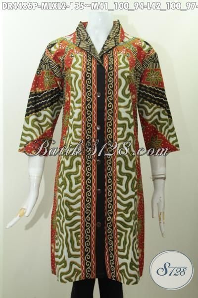 Baju Dress Wanita Model Mempesona Bahan Batik Printing Cocok Buat Kerja, Baju Dress Batik Langsung Desain Mewah Motif Elegan Harga 135K [DR4486P-M , XL]