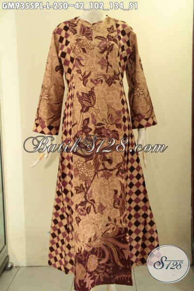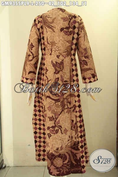 Baju Gamis Model Resleting Depan Bahan Halus Kombinasi 2 Motif Asli Buatan Solo, Pakaian Batik Wanita Berhijab Untuk Tampil Cantik Dan Anggun [GM9355PL-L]