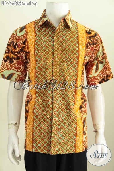 Baju Hem Batik Kekinian, Pakaian Batik Lengan Pendek Modern Halus Proses Cap Tulis Untuk Tampil Makin Gagah [LD7748CT-L]