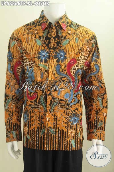 Baju Hem Batik Keren Dan Elegan, Pakaian Batik Solo Buat Pria Dewasa Terlihat Gagah Berwibawa, Bahan Halus Model Lengan Panjang Pake Furing [LP6886BTF-XL]