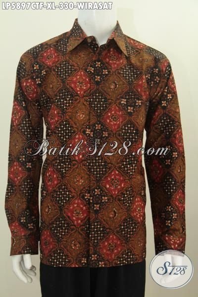 Baju Hem Batik Klasik Motif Wiarasat, Kemeja Lengan Panjang Istimewa Bahan Adem Proses Cap Tulis Untuk Penampilan Lebih Elegan Dan Macho Di Lengkapi Daleman Full Furing [LP5897CTF-XL]