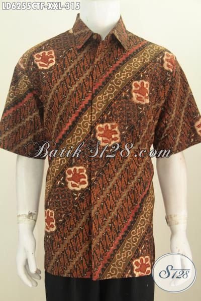 Baju Hem Batik Klasik Proses Cap Tulis Ukuran Jumbo, Berbahan Halus Daleman Full Furing Elegan Buat Seragam Kerja [LD6255CTF-XXL]