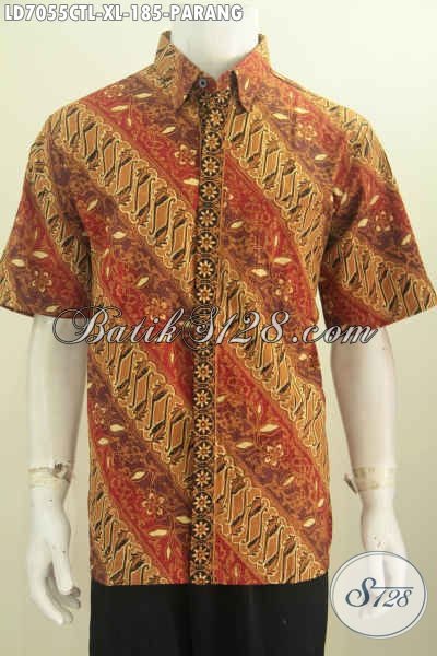 Baju Hem Batik Lengan Pendek Halus Motif Parang, Pakaian Batik Trend Masa Kini Berbahan Halus Buatan Solo Asli Proses Cap Tulis Lasem [LD7055CTL-XL]