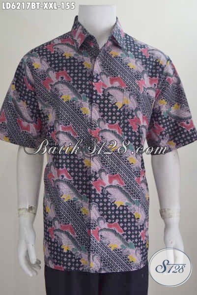 Baju Hem Batik Lengan Pendek Parang Bunga Proses Kombinasi Tulis, Baju Batik Modis Lengan Pendek Istimewa Buatan Solo Edisi Spesial Untuk Lelaki Gemuk [LD6217BT-XXL]