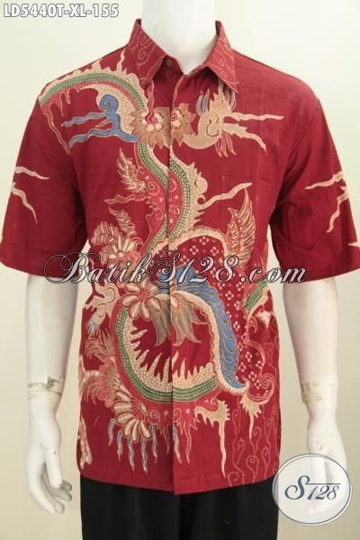 Baju Hem Batik Lengan Pendek Ukuran XL Cocok Untuk Pria Dewasa, Busana Batik Trendy Warna Merah Motif Bagus Proses Tulis Hanya 150 Ribuan Saja [LD5440T-XL]
