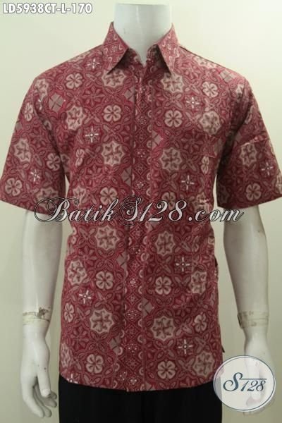 Baju Hem Batik Merah Desain Berkelas Motif Trendy Proses Cap Tulis, Pakaian Batik Istimewa Buatan Solo Spesial Buat Pria Karir Tampil Lebih Modis Dan Gaya [LD5938CT-L]