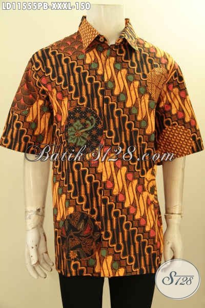 Baju Hem Batik Motif Klasik Lengan Pendek, Kemeja Batik Istimewa Kwalitas Bagus Bahan Adem Proses Printing Cabut, Exclusive Untuk Pria Berbadan Gemuk, Bikin Penampilan Gagah Nan Tampan [LD11555PB-XXXL]