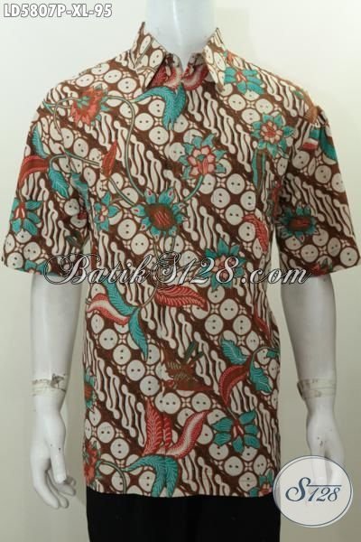 Baju Hem Batik Pria Dewasa Ukuran XL, Pakaian Batik Lengan Pendek Kwalitas Bagus Harga Murmer, Baju Batik Printing Elega Motif Parang Bunga Modis Untuk Acara Formal [LD5807P-XL]