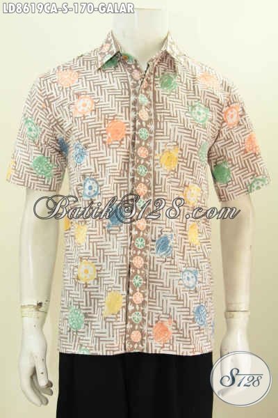 Baju Hem Batik Solo Lengan Pendek Motif Galar , Pakaian Batik Cap Warna Alam Kwalitas Bagus Cocok Untuk Seragam Kerja [LD8619CA-S]