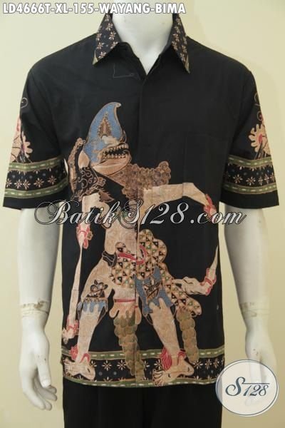 Baju Hem Batik Tulis Bagus Bahan Halus Motif Wayang Bima, Pakaian Batik Jawa Modern Spesial Untuk Pria Tampil Lebih Gagah Berkarakter [LD4666T-XL]