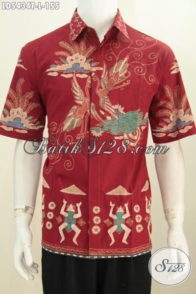 Baju Hem Batik Tulis Halus Warna Merah Motif Trendy, Pakaian Batik Modern Model Lengan Pendek Cocok Untuk Seragam Kerja Dan Acara Santai Tampil Makin Gaya [LD5434T-L]