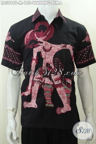 Baju Hem Gaul Pria Muda Motif Wayang Bima, Busana Batik Berekelas Model Lengan Pendek Untuk Tampil Gaya Dan Gagah [LD5018T-M]
