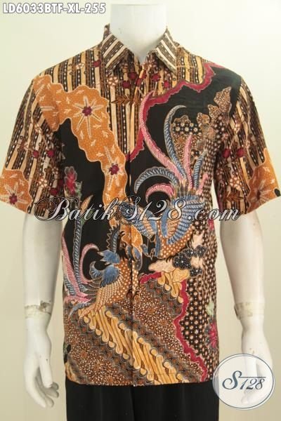 Baju Hem Halus Motif Mewah Model Lengan Pendek, Kemeja Batik Premium Kombinasi Tulis Full Furing Yang Membuat Pria Terlihat Istimewa [LD6033BTF-XL]