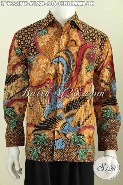 Baju Hem Lengan Pajang Mewah Khas Jawa Tengah, Produk Baju Batik Masa Kini Asli Solo Motif Cendrwasih Proses Kombinasi Tulis, Cocok Untuk Acara Resmi [LP7338BTF-M , L , XL]