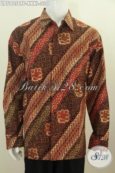 Baju Hem Lengan Panjang Pakai Furing Motif Klasik Parang Bunga, Busana Batik Elegan Bahan Halus Proses Cap Tulis Bikin Penampilan Cowok Gemuk Terlihat Langsing Dan Gagah [LP5905CTF-XXXL]