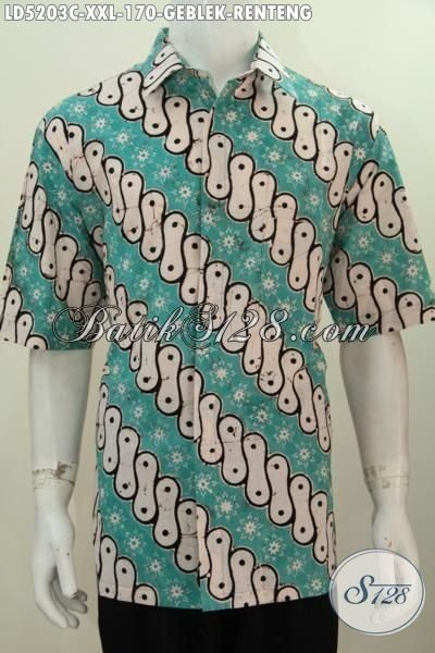 Baju Hem Lengan Pendek Batik Solo Kwalitas Halus, Batik Kemeja Motif Klasik Geblek Renteng Ukuran Jumbo Spesial Buat Laki-Laki Gemuk, Baju Batik 3L Proses Cap Warna Berkelas [LD5203C-XXL]