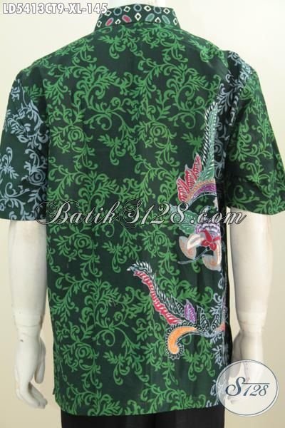 Baju Hem Lengan Pendek Hijau Bahan Batik Cap Tulis Dengan Motif Trendy Dan Gaul, Pakaian Batik Lelaki Dewasa Untuk Acara Formal Dan Santai [LD5413CT-XL]