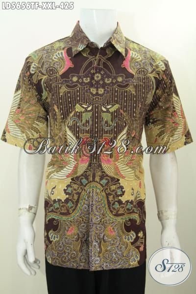 Baju Hem Modis Lengan Pendek 3L, Kemeja Batik Solo Premium Proses Kombinasi Tulis Tangan Asli Bahan Adem Daleman Full Furing Untuk Cowok Gemuk Tampil Berwibawa [LD5656TF-XXL]