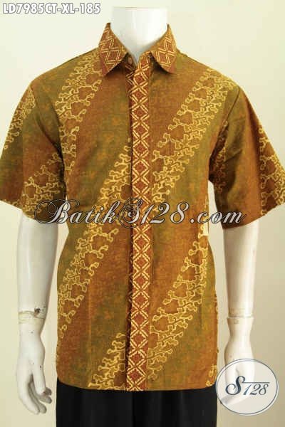 Baju Kemej Batik Elegan Motif Parang, Hem Batik Kerja Kantoran Pria Dewasa Ukuran XL Bahan Adem Proses Cap Tulis Harga 180 Ribuan [LD7985CT-XL]