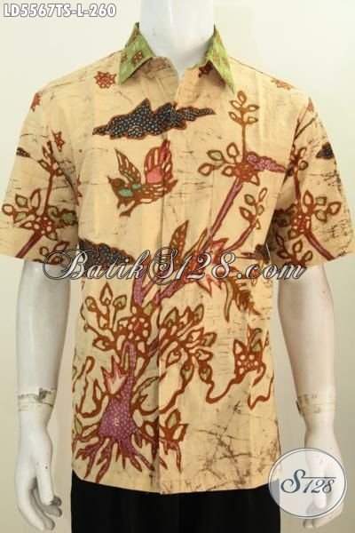 Baju Kemeja Batik Cowok Model Lengan Pendek, Busana Batik Halus Proses Tulis Soga Desain Motif Bagus Pas Untuk Seragam Kerja [LD5567TS-L]