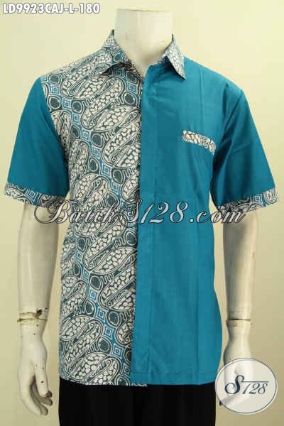 Baju Kemeja Batik Elegan Desain Kekinian Untuk Pria Muda Dan Dewasa Tampil Gagah Mempesona, Model Lengan Pend Kombinasi Kain Polos Proses Cap Warna Alam [LD9923CAJ-L]