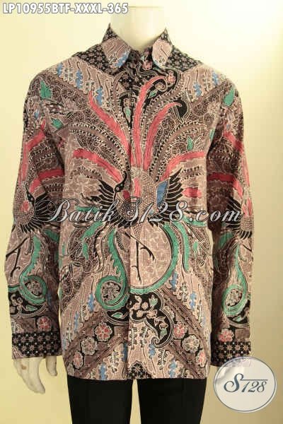 Baju Kemeja Batik Elegan Khas Solo Jawa Tengah, Busana Batik Elegan Lengan Panjang Full Furing Bahan Adem Motif Klasik Kombinasi Tulis, Spesial Untuk Pria Gemuk Sekali [LP10955BTF-XXXL]