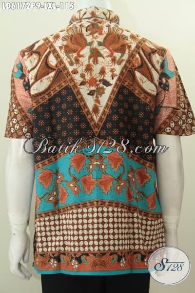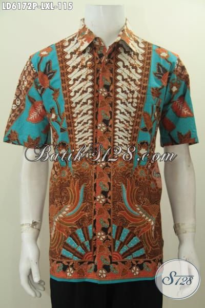 Baju Kemeja Batik Elegan Lengan Pendek Motif Sinaran, Baju Batik Halus Proses Printing Berbahan Halus Cocok Untuk Seragam Kerja Kantoran [LD6172P- XL]