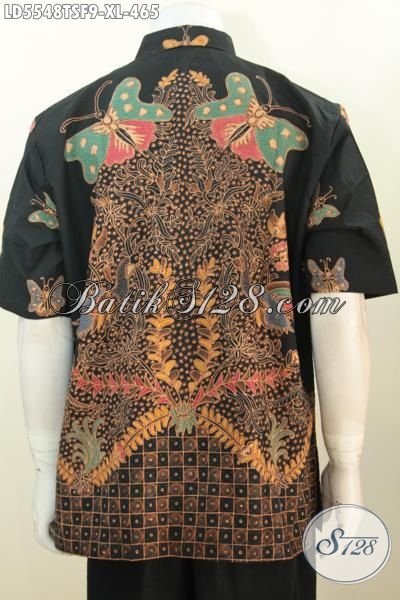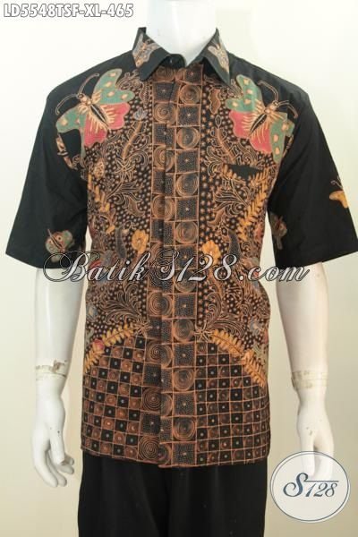 Baju Kemeja Batik Elegan Mewah Proses Tulis Warna Soga, Hem Batik Premium Lengan Pendek Full Furing Pria Dewasa Terlihat Gagah [LD5548TSF-XL]