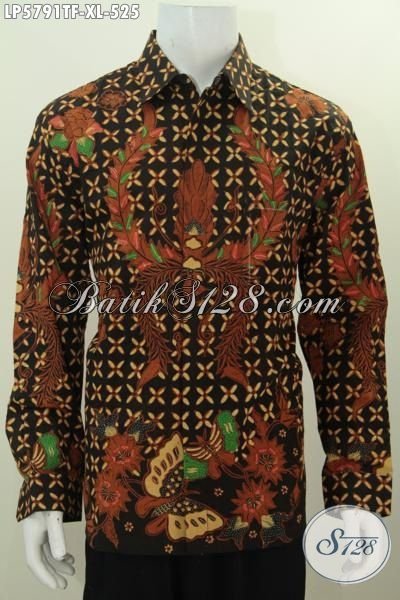 Baju Kemeja Batik Halus Motif Klasi Terkini, Busana Batik Istimewa Bahan Adem Tulis Tangan Model Lengan Panjang Pake Furing Harga 525K [LP5791TF-XL]