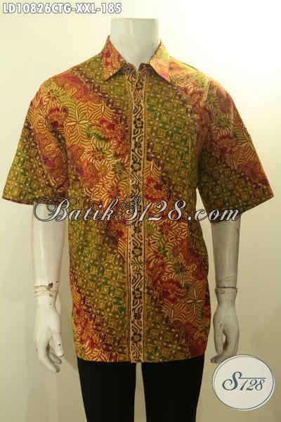 Baju Kemeja Batik Jumbo Lengan Pendek, Hem Batik Lelaki Gemuk Motif Klasik Kwalitas Istimewa Proses Cap Tulis Gradasi, Pas Untuk Acara Resmi Dan Seragam Kantor [LD10826CTG-XXL]