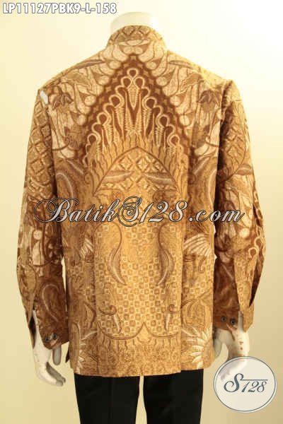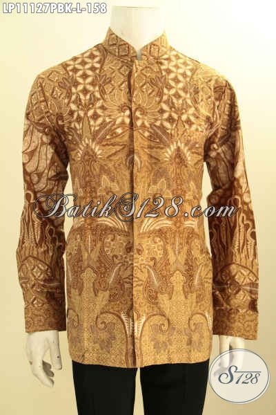 Baju Kemeja Batik Kerah Shanghai Kwalitas Istimewa, Pakaian Batik Koko Elegan Lengan Panjang Bahan Adem Motif Terkini Printing Cabut, Cocok Buat Rapat Kondangan Dan Ngantor [LP11127PBK-L]